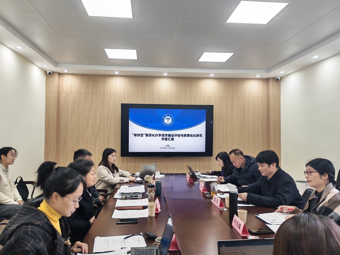 由徐璐副教授主持的2025年度全国教育科学规划教育部青年项目《“帮扶型”集团化办学成效循证评估与政策优化研究》开题论证会举行。该课题旨在以“理论构建-体系设计-实证评估-政策优化”为主线,基于循证数据回应“帮扶型”集团化办学成效难题,助力教育政策的精准优化。专家组对课题研究问题的前瞻性、研究设计的可行性及前期准备的充分性给予高度认可,并围绕核心概念界定、研究设计优化、研究重点把握、高水平成果产出等方面提出宝贵建议。