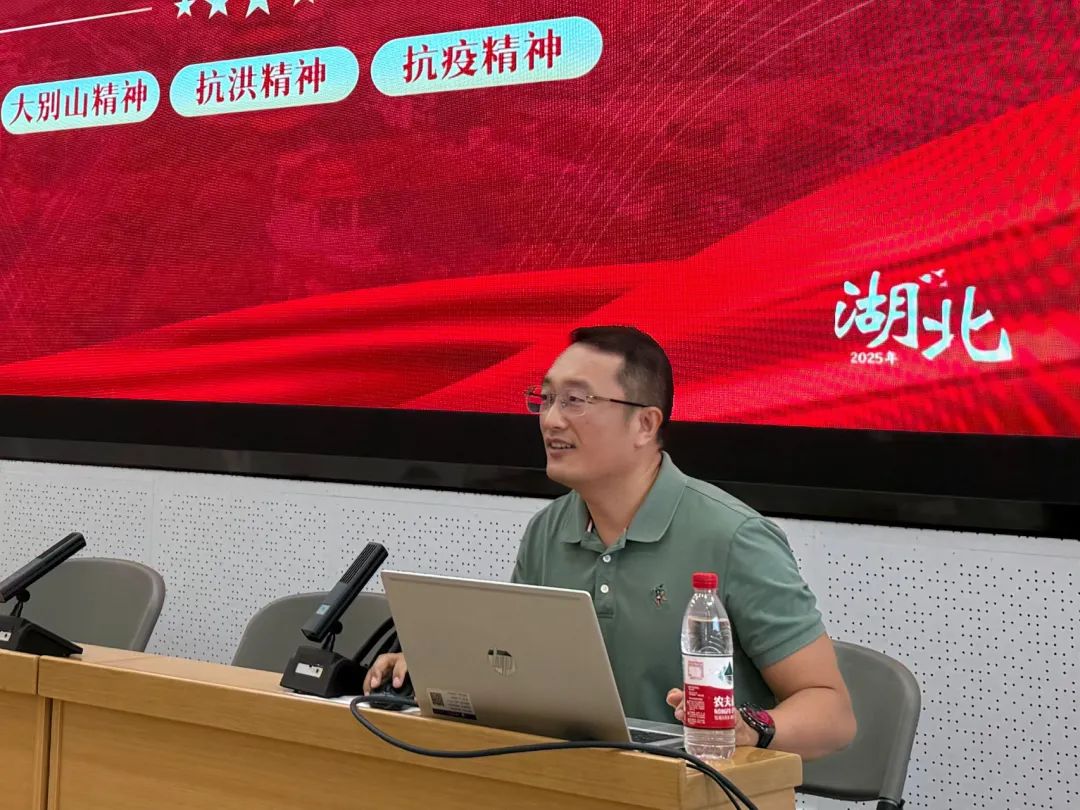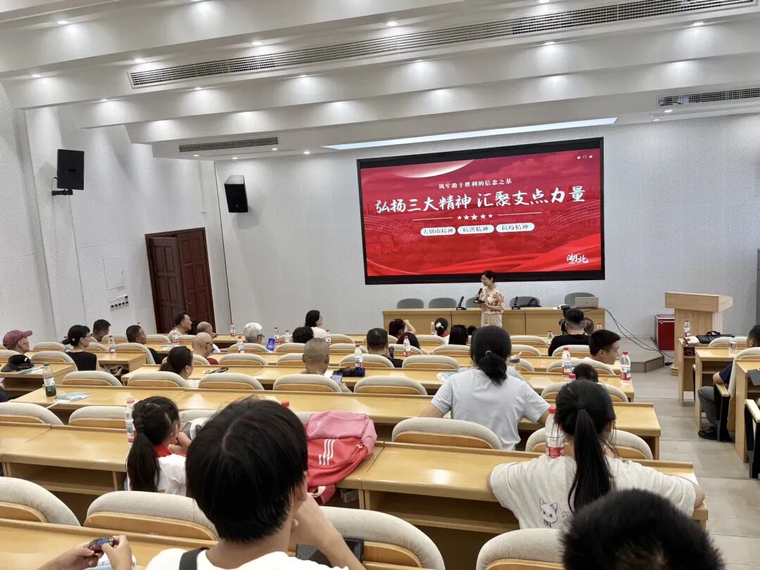 在美术学院报告厅,马克思主义学院副院长王飞作了题为“弘扬三大精神 奋力建成支点”的专题讲座。讲座系统阐释“三大精神”的核心要义、时代价值及实践路径,强调其在支点建设中的引领作用。王飞指出,“三大精神”是推动社会发展的动力源泉,号召大家在知往鉴今、抚今望远中拓宽逐梦,在新征程、建功新时代的精神航道,不断奋起、笃定前行。为在长江经济带高质量发展中奋勇争先、加快建成中部地区崛起的重要战略支点,奋力谱写中国式现代化湖北篇章,凝聚起更强劲、更高昂、更饱满的精神能量和实践能量。