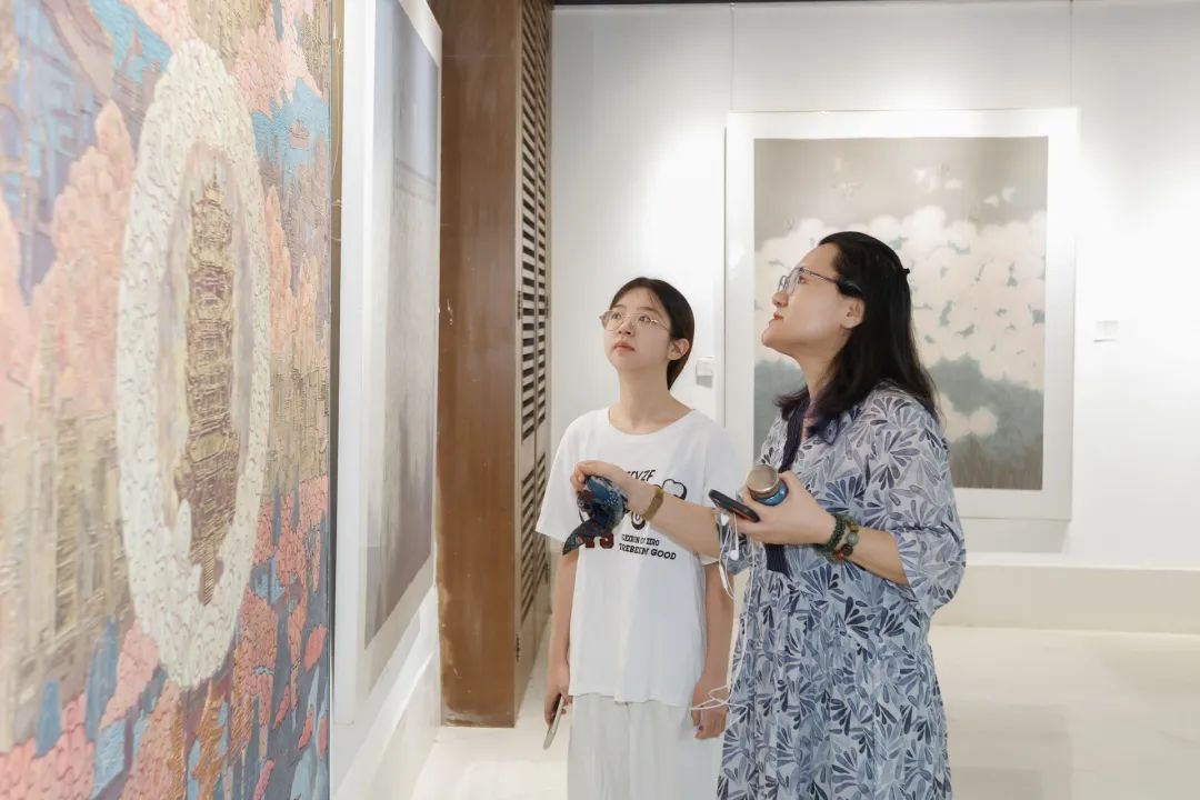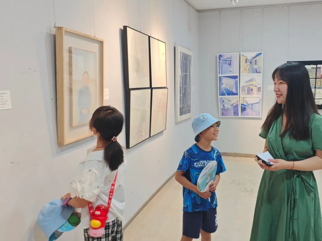 上午9时许,活动在美术学院拉开帷幕。学院作为湖北省美育科普基地,立足高校暑期美育科普活动,面向社区开放艺术资源,将美育课堂延伸至社会公众。在“双带头人”教师党支部书记彭燃教授率领下,党员教师代表在学院美术馆为活动参与者导览,生动讲解第三届湖北省高校青年艺术家美术作品。从水墨丹青中流淌的民族风骨,到现代艺术中跃动的时代脉搏,党员教师们以专业视角解读作品的文化根脉与时代风貌,引导观众在审美体验中,触摸艺术与生命、个体与家国的深层联结。活动现场,孩子们在退役军人的陪伴下,与党员教师们互动交流,斑斓的色彩与纯真的童心交织,勾勒着军民同心、共育未来的温馨画面。