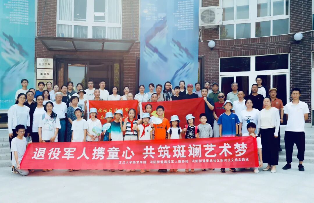 八一建军节号角渐次临近,红色精神弘扬正当其时。7月15日,江汉大学美术学院与马克思主义学院牵头开展校社党建联建活动,凝聚奥林社区退役军人家国情怀、青少年赤子之心,通过美术作品赏析与理论宣讲结合,传递时代精神,厚植家国情怀,共同谱写新时代精神与文化交融篇章。美术学院全体党员教职工,马克思主义学院党员代表,奥林社区党员职工、退役军人、亲子等70余人出席活动现场。
