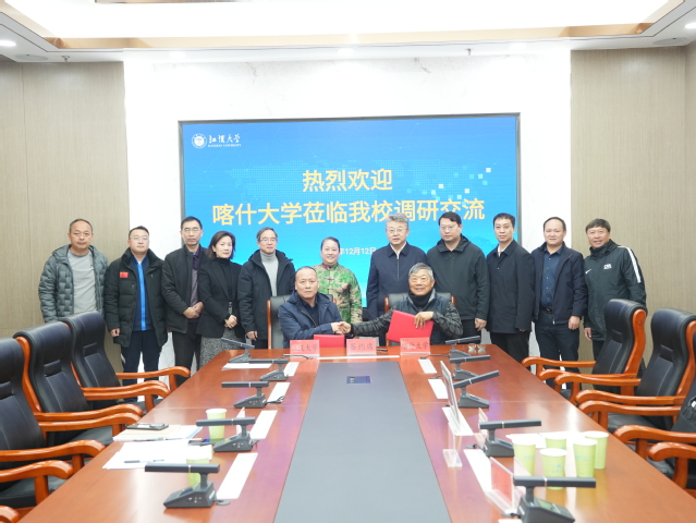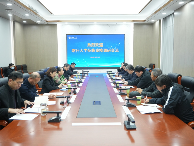江大新闻网讯 12月12日上午,喀什大学党委副书记赵斌一行7人来我校调研交流,双方围绕学科专业建设、师资队伍建设、人才联合培养及相关对口支援工作进行座谈,并签署了合作交流框架协议。我校副校长向悦出席座谈会。
