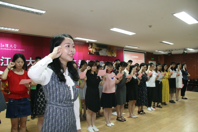 “我志愿成为一名人民教师,忠诚党的教育事业,遵守教育法律法规,履行教书育人职责,引领学生健康成长,做到有理想信念、有道德情操、有扎实学识、有仁爱之心,为教育发展、国家繁荣和民族振兴努力奋斗!”在我校2017年教师节座谈会上,新入职教师集体宣誓,拉开了他们在我校投身教育事业的序幕。在第33个教师节即将到来之际,9月8日下午,我校2017年教师节座谈会暨“三育人”工作表彰会在师生活动中心举行,党委书记、校长李强,副校长张英,副校长陈功江,各职能部门的负责同志,各学院教师代表和新入职教师参加了会议。