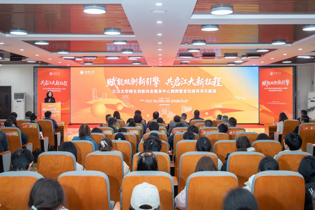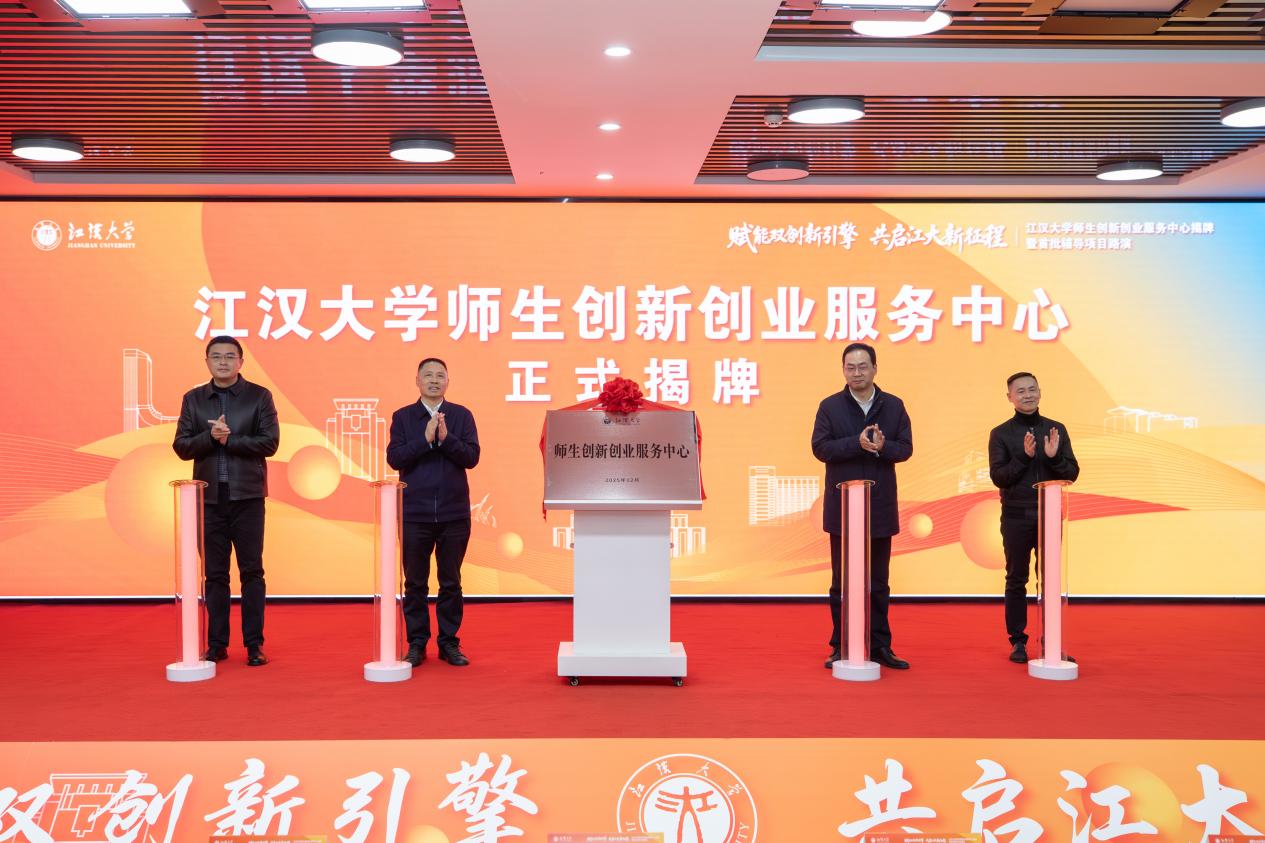 江大新闻网讯 12月18日,江汉大学师生创新创业服务中心揭牌仪式暨首批辅导项目路演活动在师生活动中心报告厅举行。校长景新华、副校长李卫东,武汉市科创局副局长柯敏出席活动。