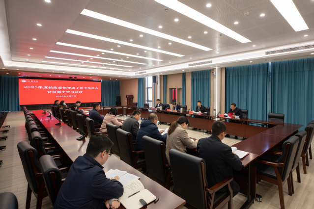 江大新闻网讯 2026年1月9日下午,学校召开2025年度校党委领导班子民主生活会会前集中学习研讨会。会议聚焦深入学习贯彻习近平新时代中国特色社会主义思想和党的二十届四中全会精神,系统学习习近平总书记关于党的建设、党的自我革命、纪律建设、作风建设等方面的重要论述,以及习近平总书记在二十届中央政治局第二十一次集体学习时的重要讲话、对深入贯彻中央八项规定精神学习教育的重要指示、在党的二十届四中全会上的重要讲话、考察湖北重要指示、关于教育和意识形态工作的重要讲话和指示精神。同时,会议组织学习了《中共中央关于制定国民经济和社会发展第十五个五年规划的建议》、中央八项规定及其实施细则精神、《习近平谈治国理政》第五卷和《中国共产党章程》、《中国共产党纪律处分条例》《中共中央办公厅关于锲而不舍落实中央八项规定精神推进作风建设常态化长效化的意见》《党委(党组)意识形态工作责任制实施办法》等相关内容。全体校党委委员围绕学习内容开展交流研讨,为高质量开好民主生活会奠定坚实思想基础。校党委书记覃道明主持会议并讲话。