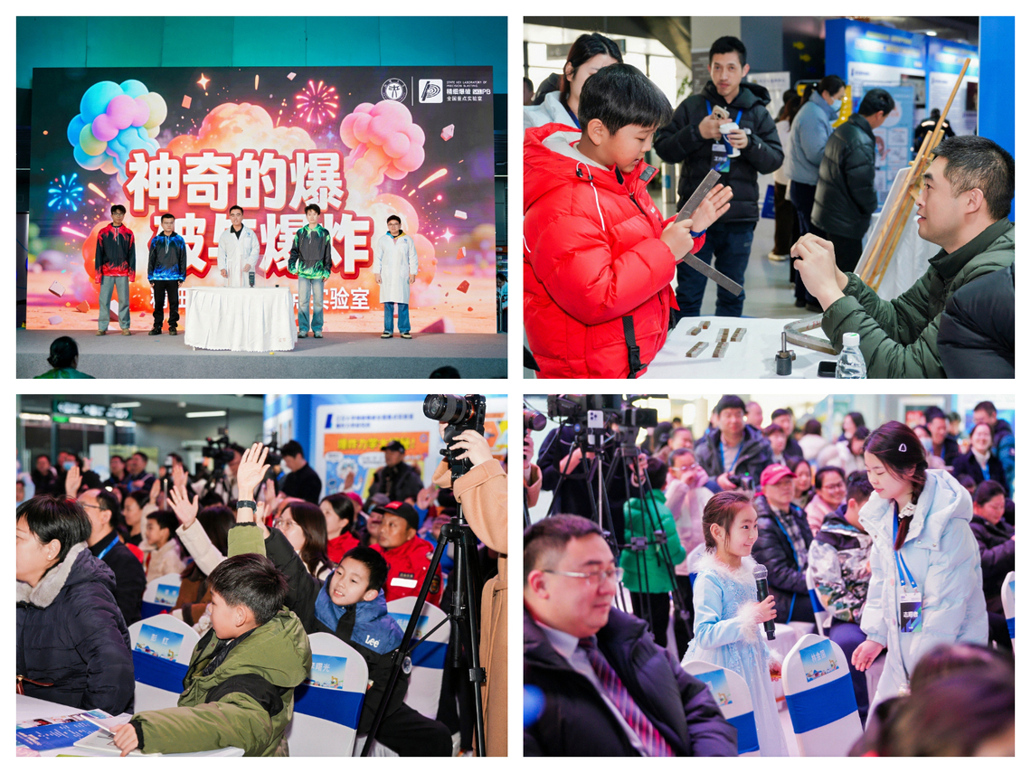 此次嘉年华活动以“精细爆破智赋应急・科学守护平安生活”为主题。当天,我校精细爆破全国重点实验室在武汉科技馆一楼大厅设立认知、防护、救援三大主题展区,丰富详尽的内容吸引了大量市民驻足参与。认知展区通过动态爆破模型、动画短片和科普展板,生动展示了精细爆破技术在城市更新、交通建设及应急救援中的实际应用,帮助公众打破对“爆破”的传统认知;防护展区设置燃气泄漏排查、灭火器使用等模拟场景,市民在志愿者指导下动手操作,掌握实用应急技能;救援展区则引入VR技术与智能机器人设备,还原突发事件中的救援现场,让市民沉浸式体验科技在生命救援中发挥的关键作用。