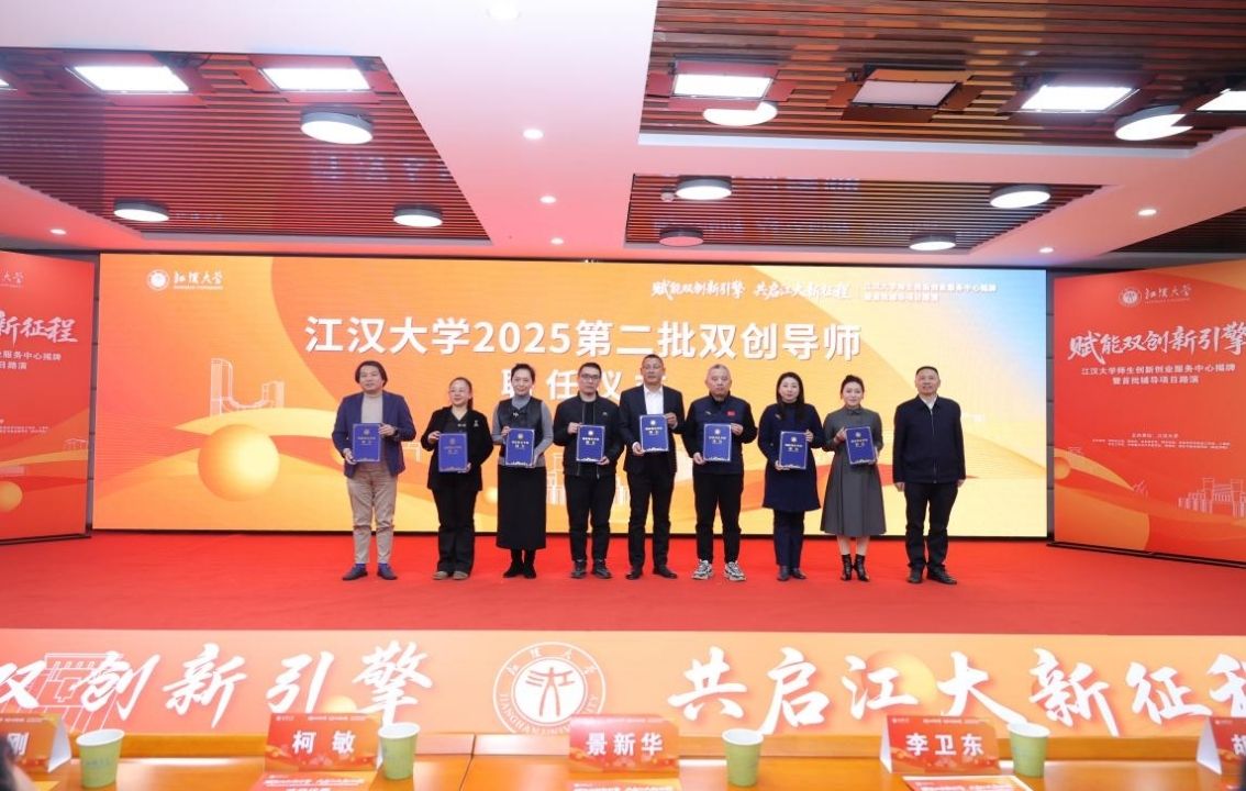 活动现场,江汉大学有关负责人为第二批创新创业导师颁发聘书,这支专业导师团队的加入,将为江大师生创新创业项目提供强有力的智力支撑与资源链接保障。