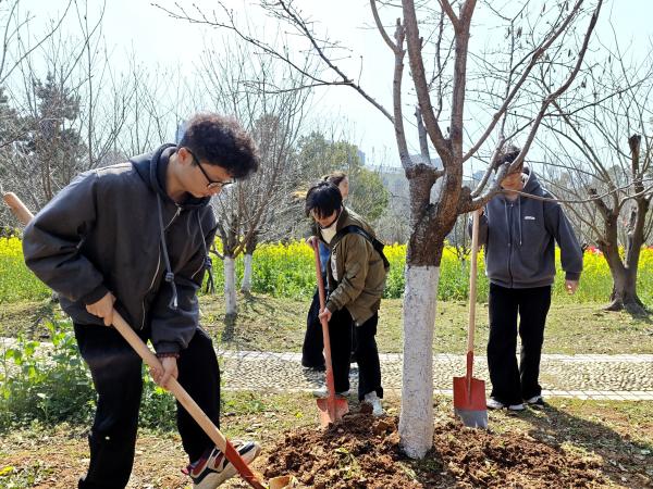 活动现场,后勤服务保障中心的专业人员为师生们讲解了树木养护、松土等实用技巧,并科普了校园绿植养护知识与生态保护的重要意义。在掌握了相关方法后,师生们分工协作,投入到紧张的劳动中。大家干劲十足,汗水浸湿了衣衫,现场洋溢着团结协作、昂扬向上的青春气息。