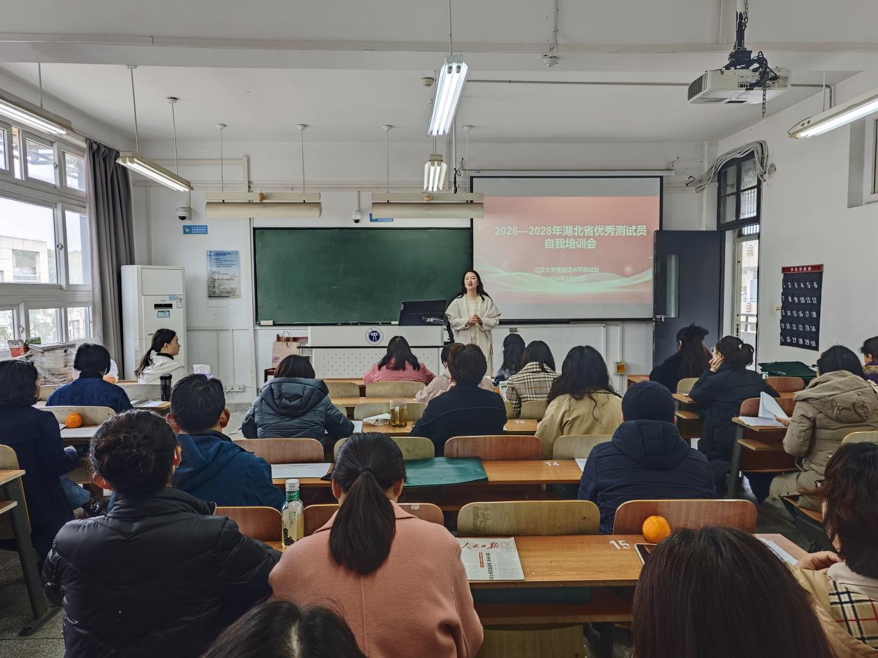 江大新闻网讯 为进一步加强学校语言文字工作队伍建设,推动普通话水平测试工作健康持续发展。3月19日,2026-2028年湖北省优秀普通话测试员(江汉大学测试站)自我培训会在J02B305举行。学校相关部门负责人及全体普通话测试员、测试信息管理员四十余人参加培训。