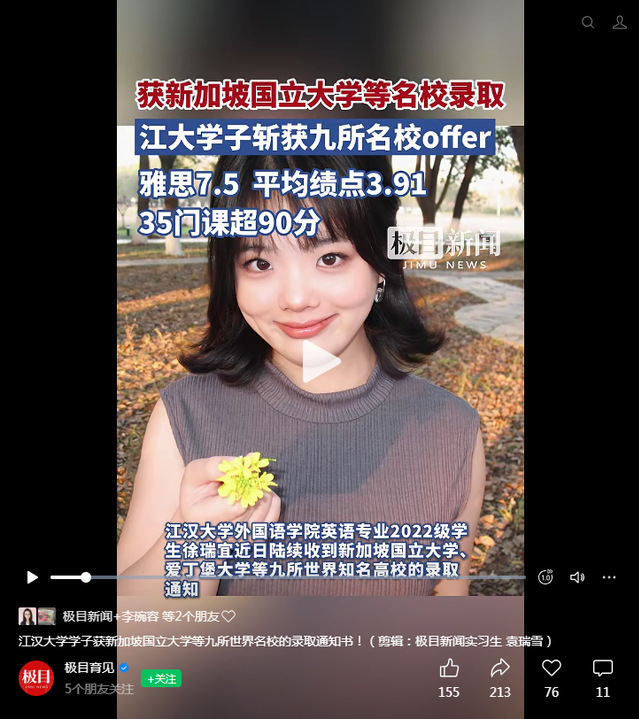 江汉大学学子斩获新加坡国立大学等九所名校的录取通知书!