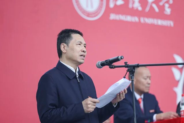 覃道明宣布江汉大学2026年运动会正式开幕,点燃全场氛围。