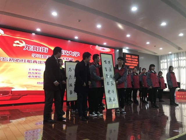 12月9日上午,我校与汉阳区龙阳街在玫瑰园小学芳草路校区联合举办了学习贯彻党的十九大精神“不忘初心红船再出发牢记使命引擎续辉煌”主题活动。两个多小时的活动,受到江汉大学商学院、人文学院、马克思主义学院师生和龙阳街居民共300余人的热烈欢迎。