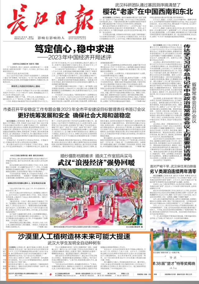 长江日报大武汉客户端2月17日讯(记者胡义华 通讯员易俊)沙漠里,热火朝天种树的场面,你见过没?能不能采用全自动化种树车种树?