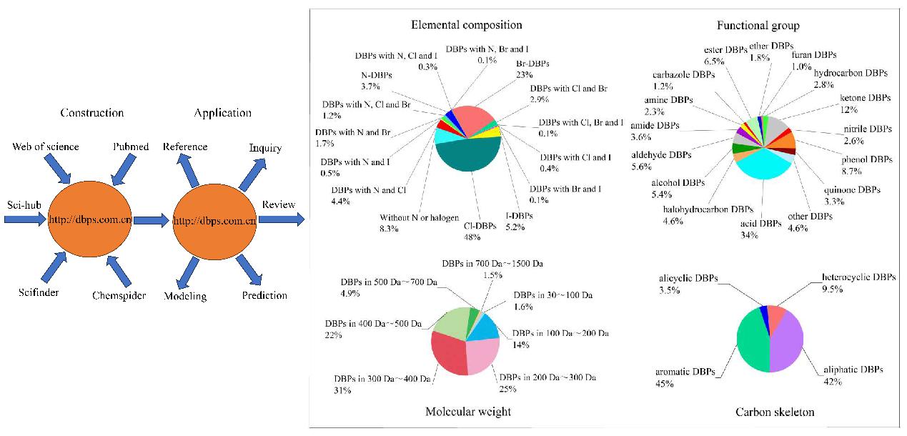 该科研小组历时4年,构建了一个消毒副产物网络数据库(https://dbps.com.cn/main)。利用消毒副产物中的信息,对发现于1974-2022年的消毒副产物的来源、元素组成、分子量范围及结构信息等进行了综合分析。