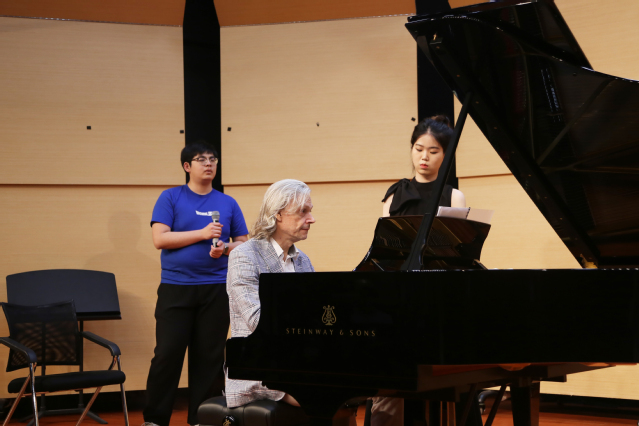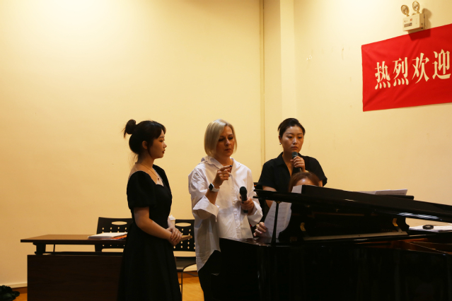 交流会后,安德烈•皮萨列夫教授和叶卡捷琳娜•斯古斯尼琴科教授分别为师生开展钢琴和声乐大师班讲学。他们一对一为学员进行了《杜姆卡》《茶花女》《费加罗婚礼》等多首名曲及歌剧选段的指导,现场针对学员演奏和演唱曲目出现的问题进行一一指正、详细讲解,亲自示范演奏、演唱技法,使现场师生获益匪浅。