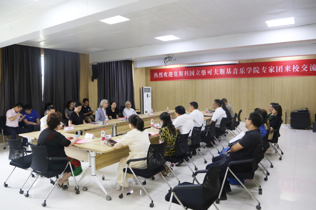 安德烈·皮萨列夫教授对我校的热情接待表示感谢,并欢迎我校师生到莫斯科国立柴可夫斯基音乐学院参观交流学习,希望在音乐教育和人才培养方面开展长期广泛的合作交流。座谈会上,音乐学院负责人介绍了学院专业和人才培养情况,两校就文化交流、人才培养、师生访学等事项进行了深入交流。