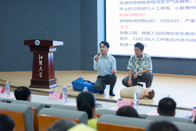会上,与会人员观看了实验室安全文化月活动及实验室安全警示视频,听取了题为《实验室事故应急演练与救援》的专题报告,并进行了现场应急处置演示与安全防范知识互动答题。