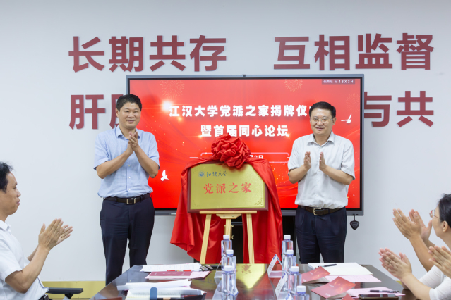 在第39个教师节来临之际,我校“党派之家”正式落成启用。9月8日下午,校党委书记覃道明,校党委委员、副校长张红星共同为“党派之家”揭牌。武汉市政协常委、教科卫体委员会副主任,农工党武汉市委副主委兼江大总支主委,校医学部常务副部长舒细记教授作首届同心论坛主题发言。