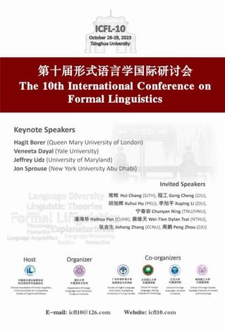 10月28至29日,第十届形式语言学国际研讨会在清华大学召开。本次会议由中国英汉语比较研究会形式语言学专业委员会主办,清华大学外国语言文学系承办,江汉大学外国语学院和广东外贸大学英语文化学院、北京理工大学外语学院、南京理工大学外语学院共同协办。来自中国、美国、英国等国家近123名学者在会上交流学术成果,我校外国语学院黄海泉教授作专题报告并主持分会场报告会。