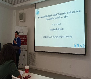 黄海泉教授在题为《汉语儿童语言中的焦点识别:来自添加副词“也”的实验证据》的报告中,分享关于学龄前汉语儿童能利用韵律信息识别焦点成分的研究成果。