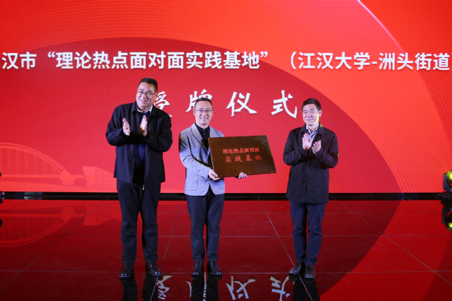 3月31日,武汉市中心城区首家“理论热点面对面实践基地”在汉阳正式启动,江汉大学与洲头街“面对面”结对,共建实践基地。武汉市委宣传部为江汉大学和武汉市汉阳区洲头街授牌。
