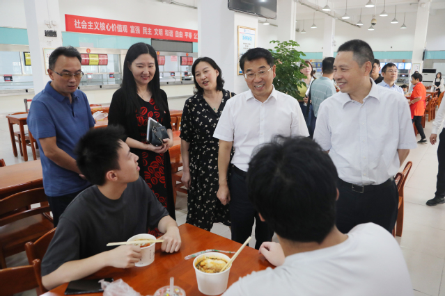 食品安全重于泰山。为严格落实食品安全管理制度及有关防控要求,学校积极构建食品安全“防火墙”,不断完善就餐环境,对食堂设备进行维护和更新改造,开学前对公寓、楼宇直饮水机进行清洗消毒和滤芯更换,对二次供水水箱和图书馆直饮水系统进行清洗消毒,确保师生日常用餐安全。检查中,邓立红与正就餐的同学交谈,就食堂物价和菜品质量听取同学们意见,对学校“一元特价菜”举措表示肯定。在科创大楼施工现场,邓立红检查了工地施工安全和周边综合治理情况,走访了师生服务中心,对信息化校园建设和网络安全管理给予充分肯定。