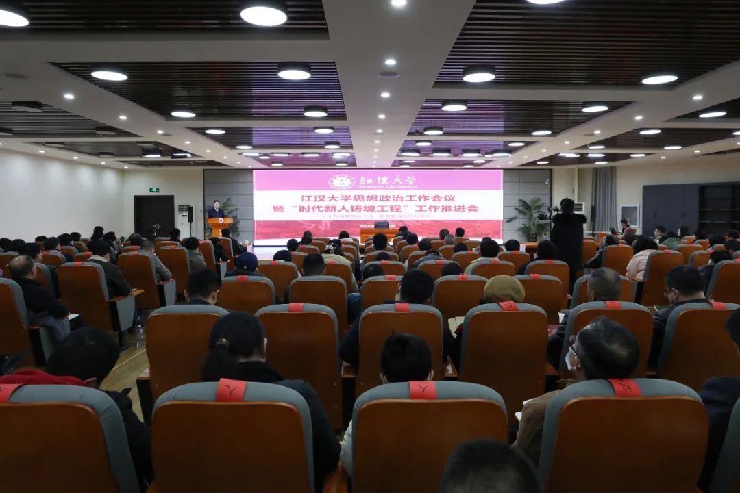 12月25日下午,我校召开思想政治工作会暨“时代新人铸魂工程”工作推进会,主要任务是深入贯彻党的二十大精神,坚持以习近平新时代中国特色社会主义思想为指导,牢牢把握立德树人根本任务,认真落实教育部和省教育厅决策部署,深入推进学校“时代新人铸魂工程”落地落实,着力培养担当民族复兴大任的时代新人。校党委书记覃道明出席会议并讲话,强调江汉大学已进入合并组建第三个十年,正处在爬坡过坎的关键时期。要以高度的责任感、使命感、紧迫感,以更加积极主动、奋发有为的精神状态,努力做好新形势下的思想政治工作,为学校高质量发展提供坚强政治保证。校党委副书记、校长景新华主持大会。全体在校校领导、中层干部、思政课教师代表、班主任代表、辅导员代表参加会议。