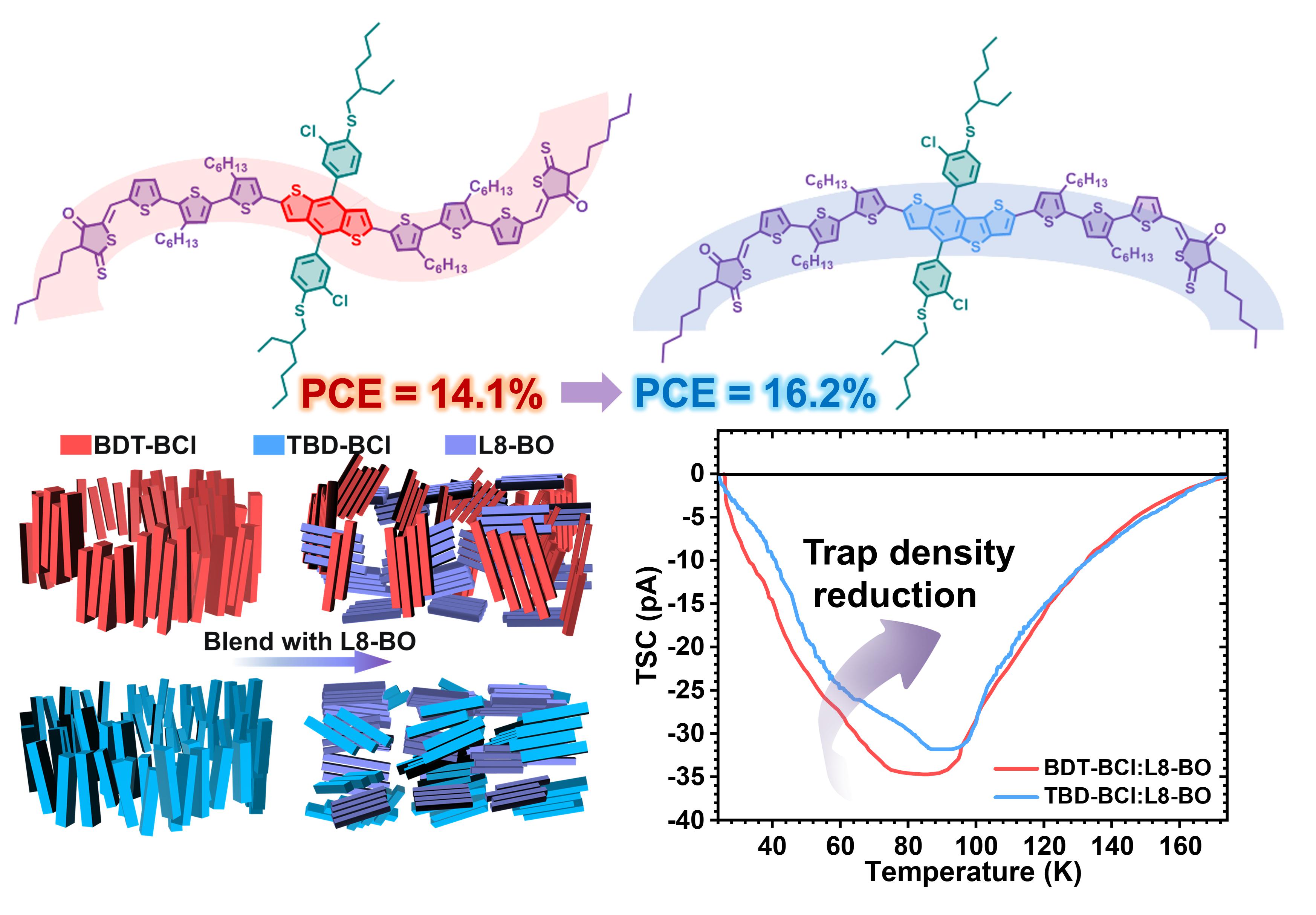 在此项研究中,通过骨架不对称策略设计和合成高效的小分子给体,可以显著降低全小分子有机太阳能电池的陷阱密度(图1)。同时,实验和理论计算均表明较低的驱动力仍能促进激子解离,抑制载流子-电荷复合。通过降低能量损失,全小分子有机太阳能电池器件的性能得到进一步提升,且为后续高效率分子设计提供了新的视角。
