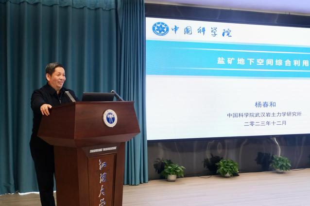 副校长、江汉大学科协主席贾永胜致欢迎辞。科技沙龙活动中,杨春和院士、傅正义院士分别作了题为《盐矿地下空间综合利用》《材料复合新技术研究进展》主题报告。