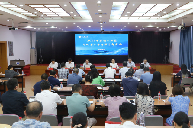7月5日下午,我校2023年暑期工作暨师德集中学习教育部署会在行政楼216会议室召开。校领导覃道明、景新华、张红星、夏松、李卫东、贾永胜及各部门、学院负责人参加会议。景新华主持会议。