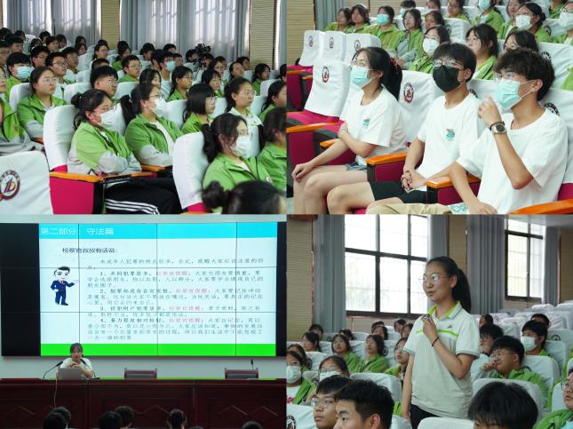 随后,我校一行到保康一中考察调研,法学院学生徐婉怡向保康一中学生介绍了江汉大学,希望大家努力学习,有机会能到美丽的江汉大学读书,并讲授了一堂精彩的普法课程。一中师生纷纷参与互动,现场气氛热烈。