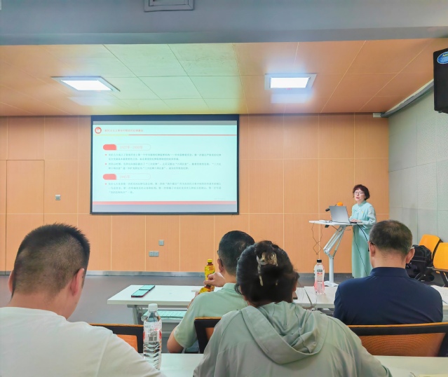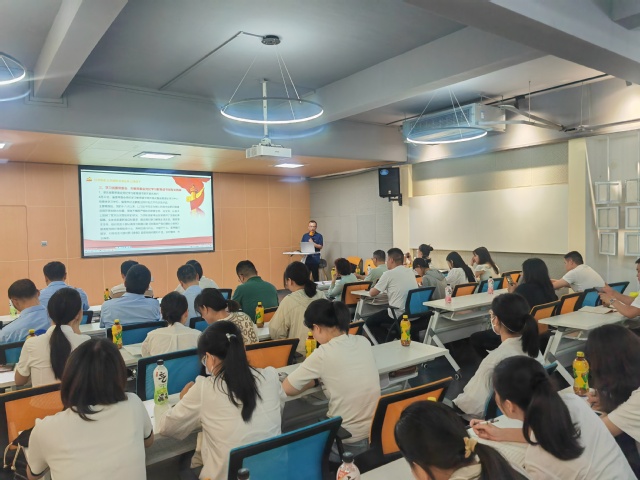 活动伊始,党员们奏唱国歌,重温入党誓词。随后,设计学院党委副书记唐浪讲授《党的纪律建设百年历程》专题党课,回顾了不同历史阶段党的纪律建设主要情况,详细解读了党纪学习教育的重要意义、主要目的、目标要求、学习重点和工作要求,帮助党员们把握此次党纪学习教育的内在逻辑与实践路径,明确学习方向。