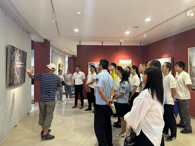 党员们参观了设计学院2024届“新质·未来”毕业展、美术学院综合材料艺术作品展。学子作品主题包含红色记忆传承、环境保护、未来科技发展等,将传统与现代、东方与西方、艺术与技术巧妙地融合在一起,创作出令人耳目一新的艺术作品。我校教师生动细致的讲解让党员们走近艺术空间,感受艺术魅力,使美育教育达到润物细无声的作用。