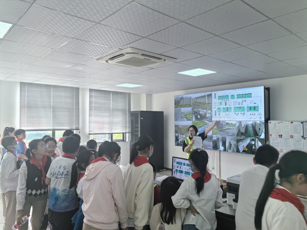参观中,工作人员为同学们详细讲解污水处理的基本知识、工艺流程,怎样保障城市生态环境和水资源安全以及水资源安全对于群众生活和经济社会发展的重要性。