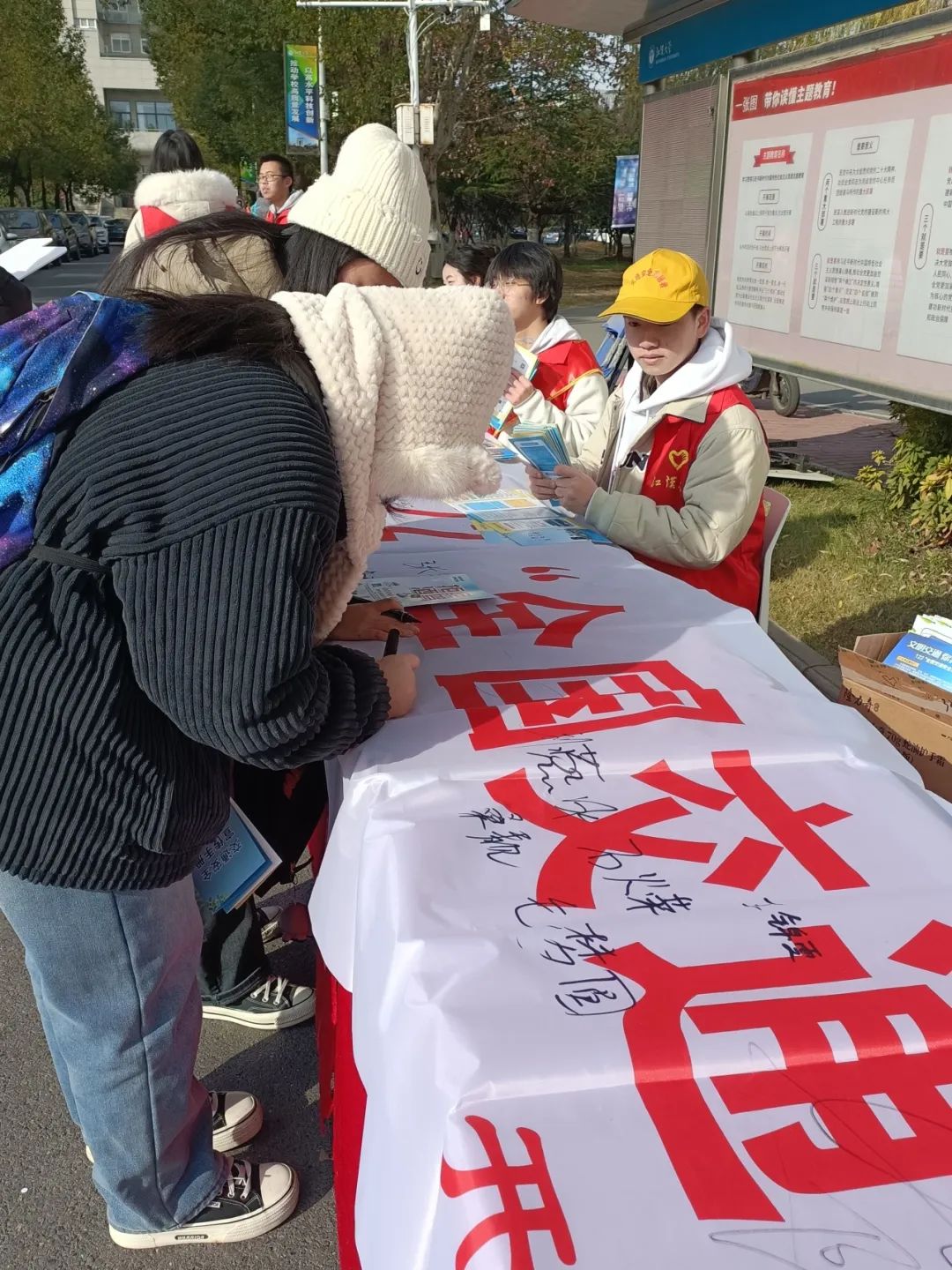 学生志愿者、教职员工、商户代表等进行文明交通安全倡议宣誓和万人签名。