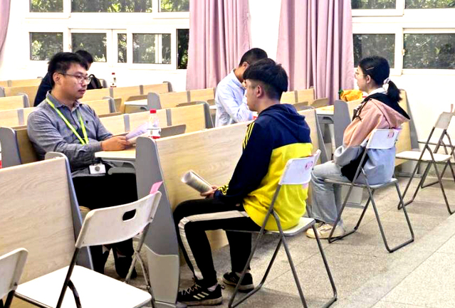 法雷奥集团代表与同学们进行了互动交流,同学们现场递交求职简历,并按照意愿岗位有序进行了笔试、面试。