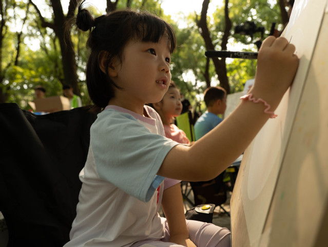 孩子们对于科学实践创造最好、最简单的方式就是通过绘画的形式来表现。他们在大学生志愿者的带领下来到校园树林里,观察自然,发挥想象,用五颜六色的画笔画出形态各异的机器人以及他们心目中的科技作品,去表达他们对“美”的感受。