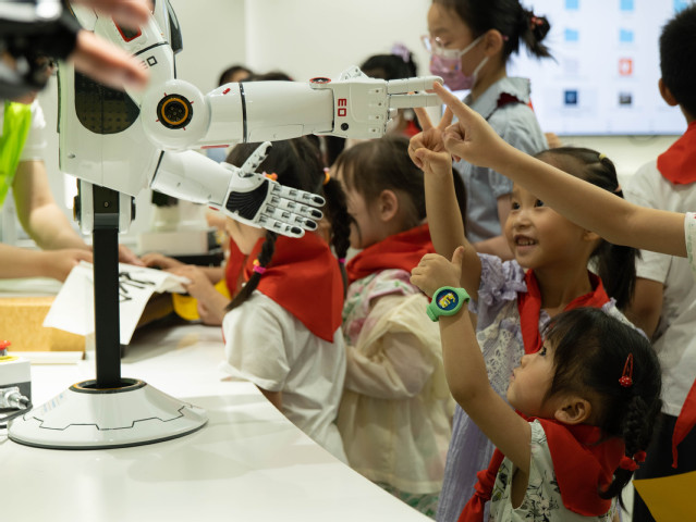 “我很喜欢机器人,今天的参观让我学到了很多知识,感受到人工智能的‘厉害’,我要更努力学习,为祖国的更加强大贡献力量。”李怡菲小朋友兴奋而又坚定地说道。