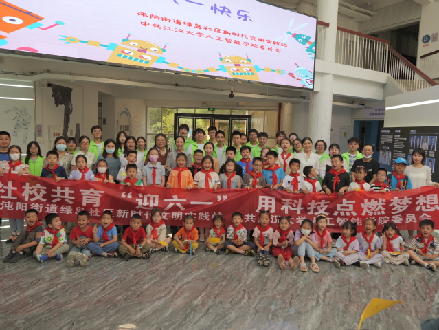 6月1日,沌阳街道绿岛社区等周边社区小朋友四十余人来到我校,在人工智能学院体验科学实践,度过了一个愉快而又别样的儿童节。