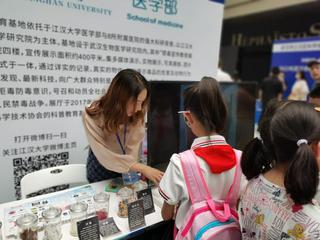 近日,我校医学部武汉生物医学研究院皮明山、徐丛玥老师带领杨真、江奕希两位同学,参加2023年武汉市科技活动周活动,并开展禁毒科普教育宣传。