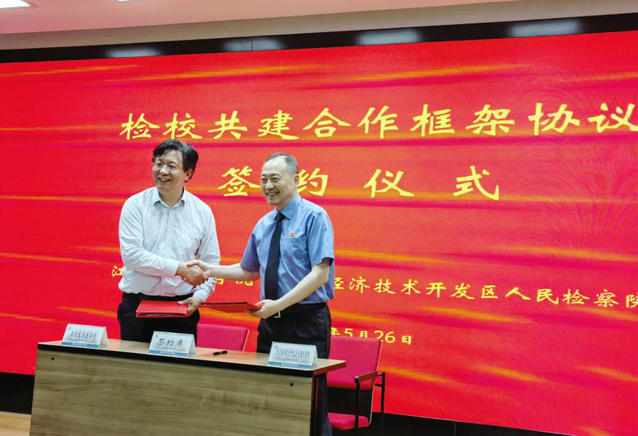 为积极探索检察理论研究与卓越法治人才培养融合发展的新路径,搭建检察机关法律实务与高校法学教育资源的交流共享平台,5月26日上午,武汉经济技术开发区人民检察院与江汉大学法学院举行合作共建签约仪式。