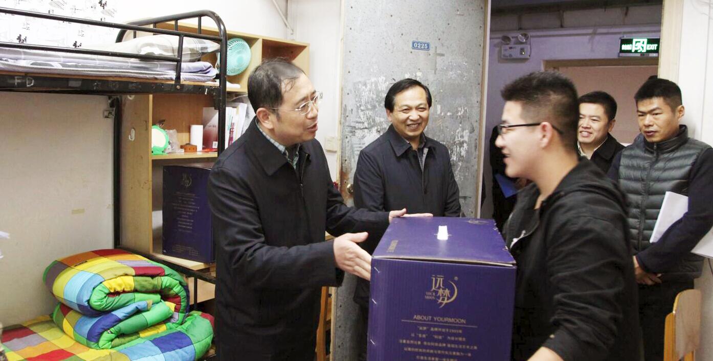 11月17日下午,校长张幸平带领学校办公室、党委学工部、后勤集团、商学院、医学院和护理与医学技术学院领导,到南区学生寝室,走访慰问同学们的学习生活情况,为家庭困难的学生送去了御寒的棉被。