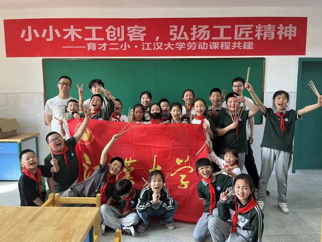 此次课程主题是《木乐课堂》,通过制作中国筷子让小学生们既受到中华传统文化熏陶,又感受到动手劳动快乐。该课程共建是江汉大学与育才二小委托管理合作项目的重要实践活动之一,我校将持续发挥高校智力、资源优势,助力汉南育才二小打造劳动教育品牌特色,推进该校“新生活教育”理念深入发展。