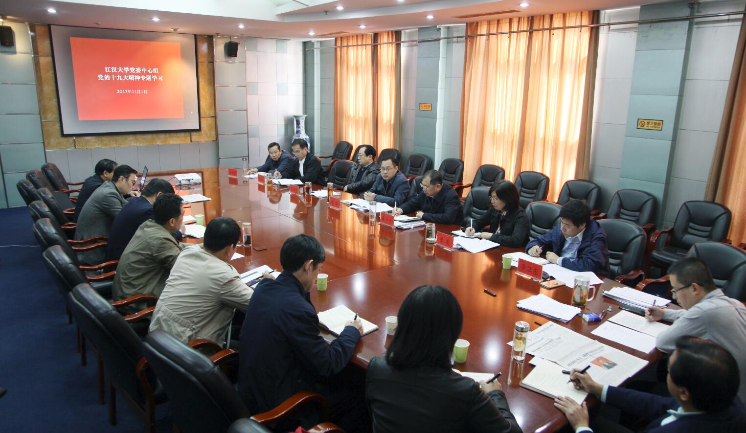 校党委书记李强要求,一是要把学习宣传贯彻习近平新时代中国特色社会主义思想作为今后和相当长一段时期内的头等大事,广泛动员、周密部署、学深悟透、掀起高潮。做到全覆盖,无遗漏,使十九大精神成为干部师生的思想罗盘和行动指南;二是要联系实际学,把党的十九大精神转化为推进各项工作创新发展的强大动力。完成好全年的工作任务,争取今年连续第四年获评武汉市目标绩效立功单位,并谋划做好2018年工作;三是承担好大学“立德树人”的使命,全方位全过程融入学校思想政治工作。不仅要抓好习近平新时代中国特色社会主义思想“进教材、进课堂、进头脑”,还要在学科建设、学术研究、宣传培训上下功夫;四是成立习近平新时代中国特色社会主义思想研究中心,研究习近平新时代中国特色社会主义思想,传播马克思主义中国化最新成果,推进习近平新时代中国特色社会主义思想“三进”,进一步促进学校党建、思想政治工作和文明建设深入发展。