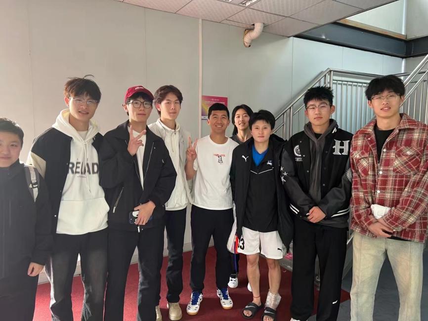 中国女足队长、江大女足队员王珊珊(右三)与学子合影
