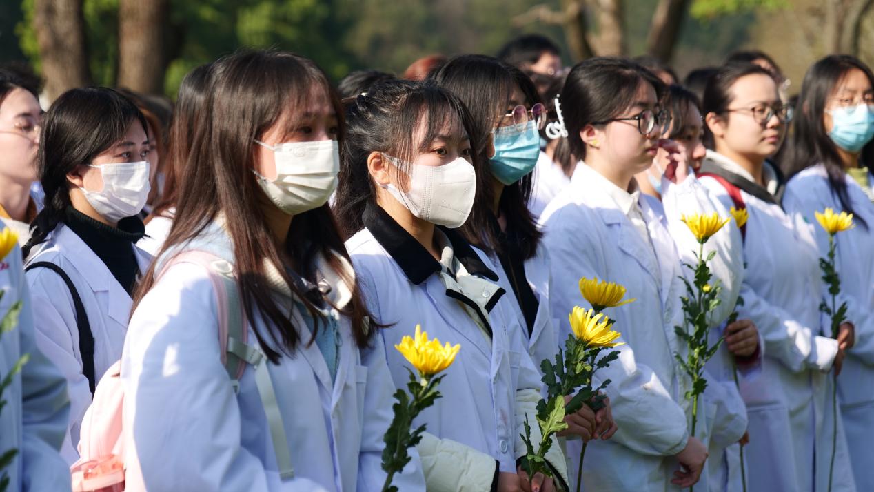 3月26日上午,清明节即将到来之际,由武汉市红十字会普瑞眼角膜库组织的遗体捐献者纪念日活动在石门峰纪念公园举行。我校医学部30名学生代表在解剖教研室老师的带领下参加了此次活动。大家共同缅怀伟大的遗体捐献者,向他们致以崇高的敬意和缅怀。