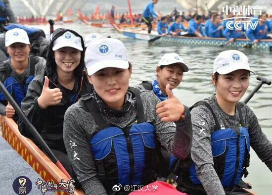 我校女子龙舟队不畏强敌,在职业女子组的比赛中,敢于挑战曾多次代表中国参加世界龙舟赛的冠军队。在500米直道竞速的比赛中,顽强拼搏,一路领先,最终赢得500米直道竞速冠军,打破了多年来青少年龙舟队无法与职业队抗衡的局面,他们的表现惊艳全场,得到媒体高度赞扬,让江汉大学的画面频繁展现在中央媒体和亿万观众面前。