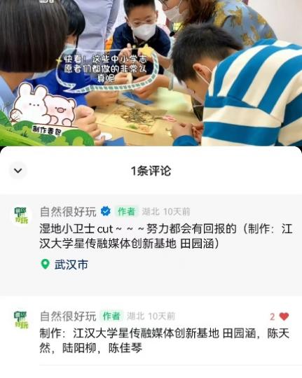此外,人文学院星传融媒体创新实践基地2020级、2021级广告专业的17名同学,在国庆节刚过不久,就在老师的带领下与长江日报有关部门组成联合小组,开展大会宣传视频制作工作。在学校老师和业界老师指导下,大家充分挖掘素材,积极讨论创意,紧密分工合作,采用动画串联、VLOG等各种形式完成了《遇见湿地艺术园》、《沙湖湿地现场采访》、《探访大师园体验各国园林风情》、《湿地小卫士来了——把绿色武汉讲给世界听》、《湿地小卫士湿地公约30周年揭幕纪念活动》、《青头潜鸭带娃记》等视频作品,为武汉向世人讲好湿地故事贡献自己的智慧和力量。