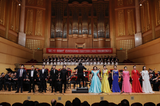 5月21日晚,琴台音乐厅灯火辉煌、群星璀璨,一场以“喜迎二十大·放歌新时代”为主题的武汉市纪念毛泽东同志《在延安文艺座谈会上的讲话》80周年交响音乐会在这里如期举办。我校音乐学院有关教师和春潮合唱团学生参加了音乐会演出。