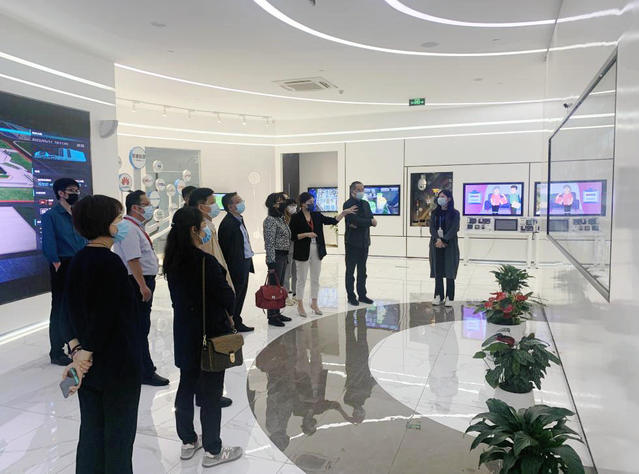 社发处一行参观了公司展厅、党员活动室、校友办公场所等地,详细考察了解公司数字孪生、人脸识别系统等多项技术在城市公共服务、教育资源分配等方面的应用以及校友工作情况。