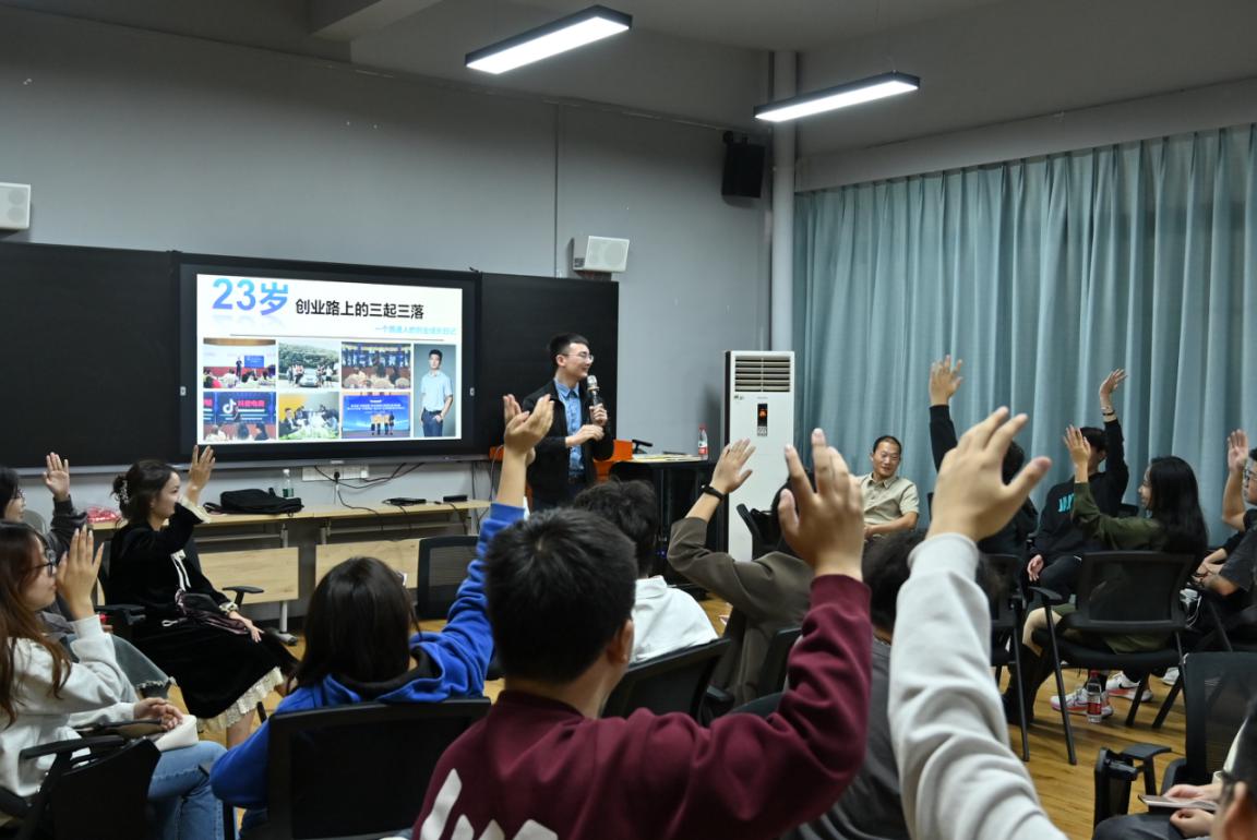 创业沙龙活动中,黎张鑫给同学们解释了创赛与创业的不同之处,讲述了如何在创业情怀和创业比赛中找到联结点,达到两者平衡,并以鲜活生动实例作了展示说明。他还就创业计划书和创业比赛中的答辩技巧等问题进行分享和探讨,通过头脑风暴、小游戏等方式,激发现场同学的创赛热情和创业憧憬。